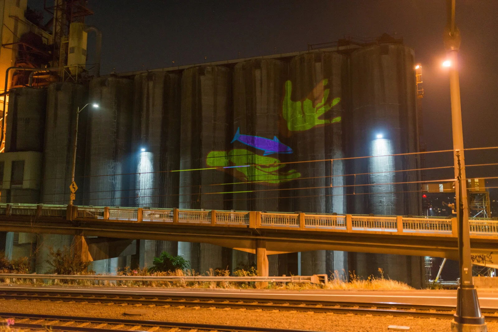 Chris Doyle’s work is concerned with the paradox of humanity’s inherent struggle to transcend human qualities. For Converge 45, he has created Presto!, a series of animations drawn from gestures of sleight of hand, with isolated examples from speeches made by the 45th President. The loop was first projected onto the architecture of Portland, and now is made publicly available for anyone to download to project in their own city, town, or to use in any way they like.